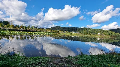 연못에 비췬 하늘이 아름답습니다.
