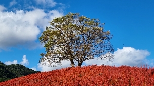 10월 가을이면 느티나무 둘레가 붉게 물들어 500년 묵은 느티나무를 더 화려하게 꾸며줍니다.